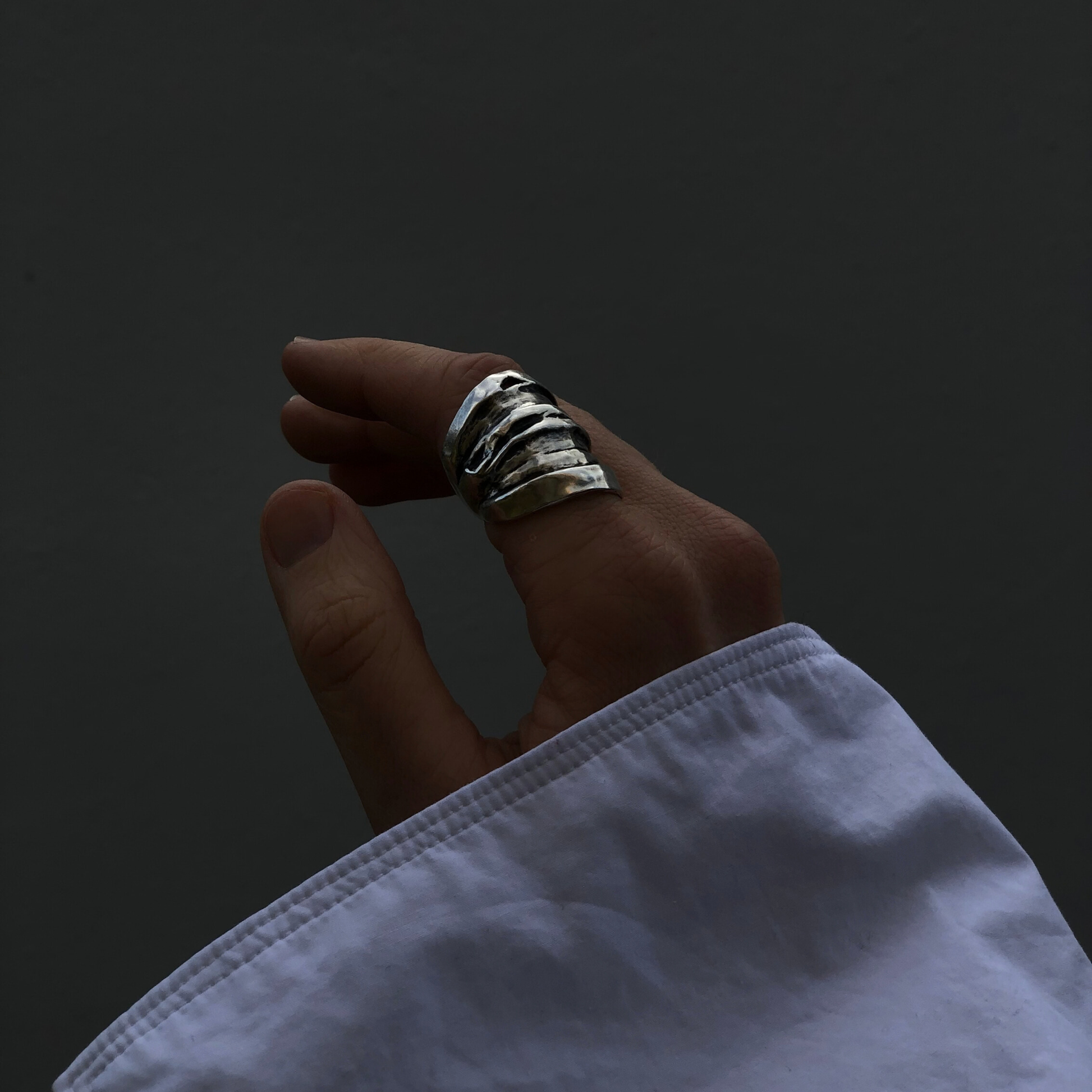 The ring is crafted from 935 Silver, embodying a contemporary interpretation of ancient techné.